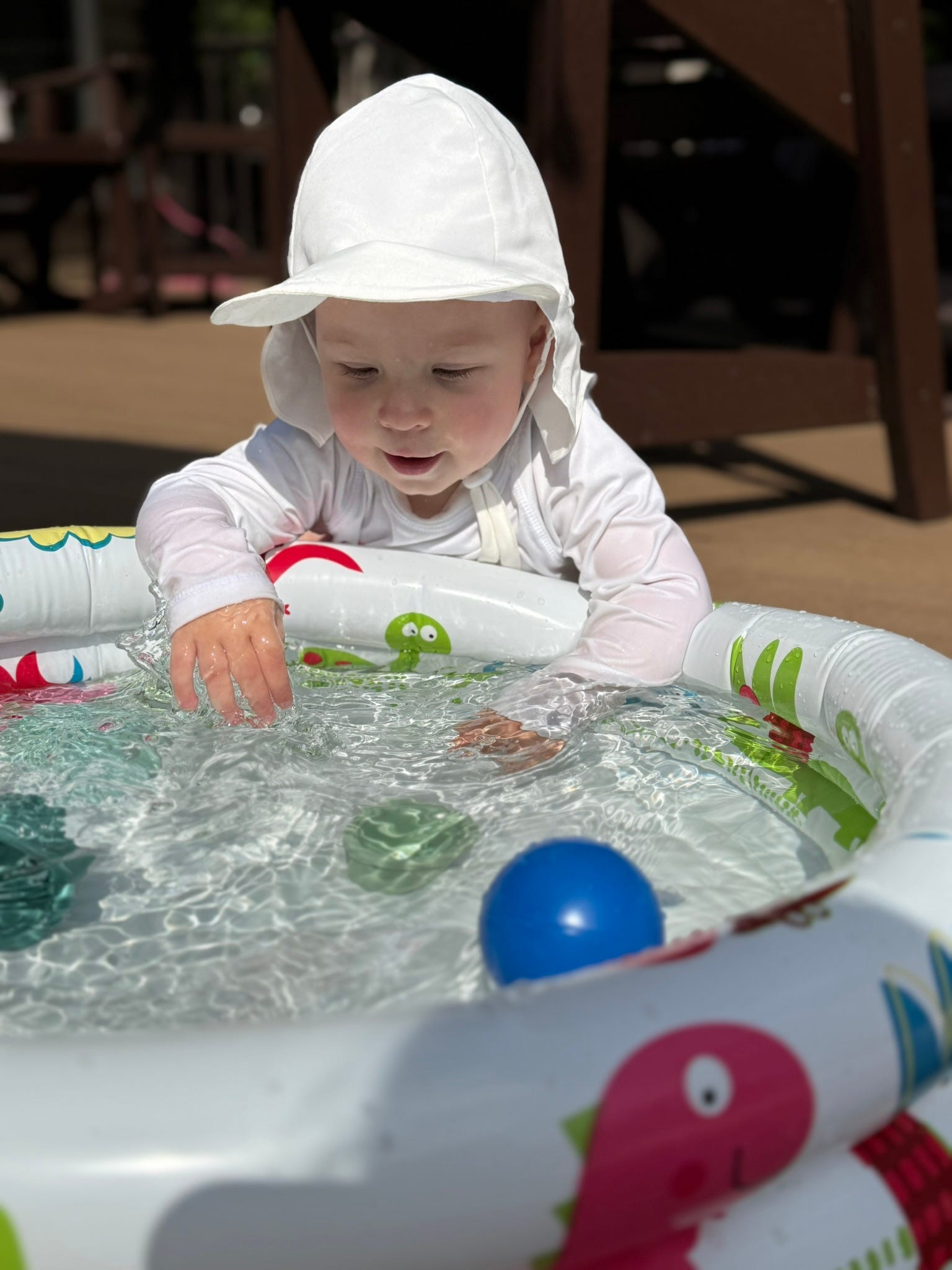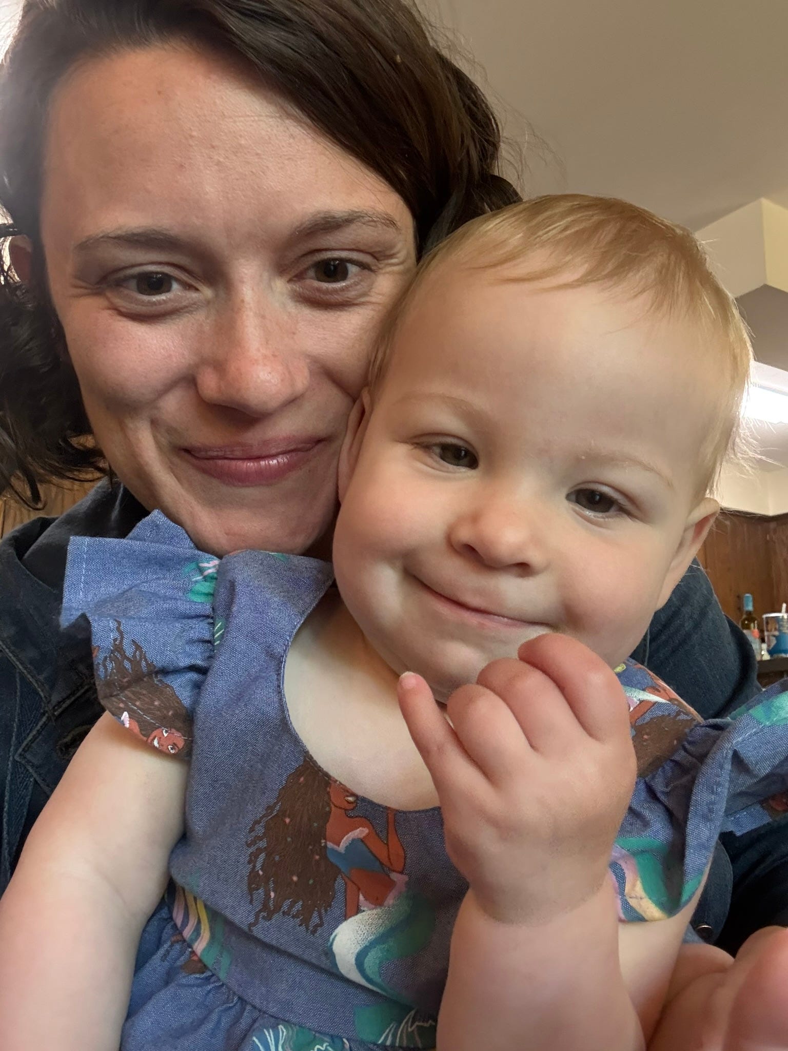 Soon after, you stand — without anything to help pull you up — in the middle of your play carpet in the sunroom. You take a wide stance and hold yourself there. The room is dead quiet as we all watch you. When you wobble down, we burst into applause, and you applaud too, and I tear up. It feels momentous.