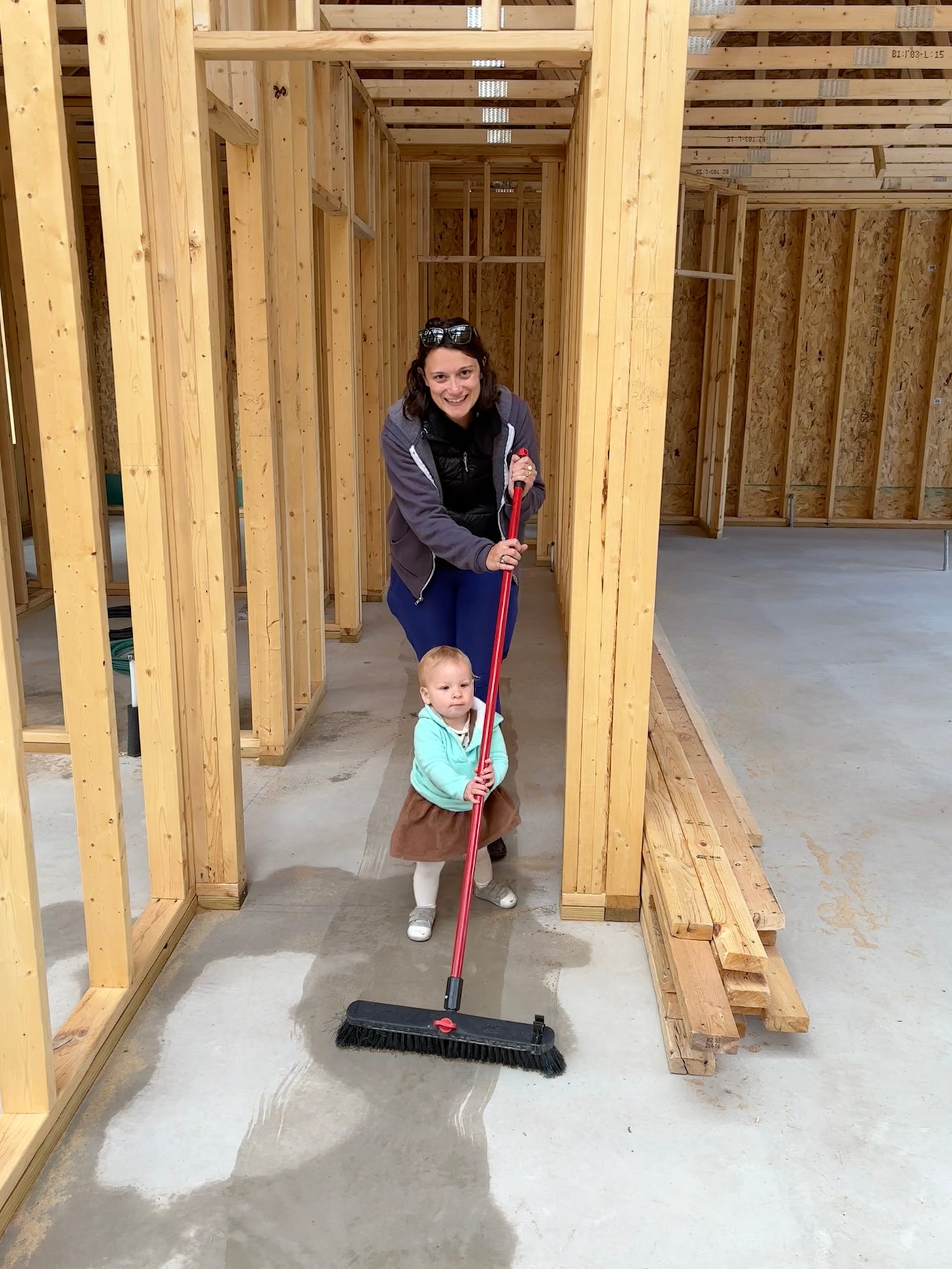 Despite my tiredness, it really is a lovely day overall. You go on your balance bike a few times — it’s wild how fast you got the hang of it. We take a walk after your nap and go up and down Mariner Road and Lori Lane. The fresh air is revitalizing. We walk through our house in progress, I can’t help it every chance I can, and you practice sweeping our someday halls.