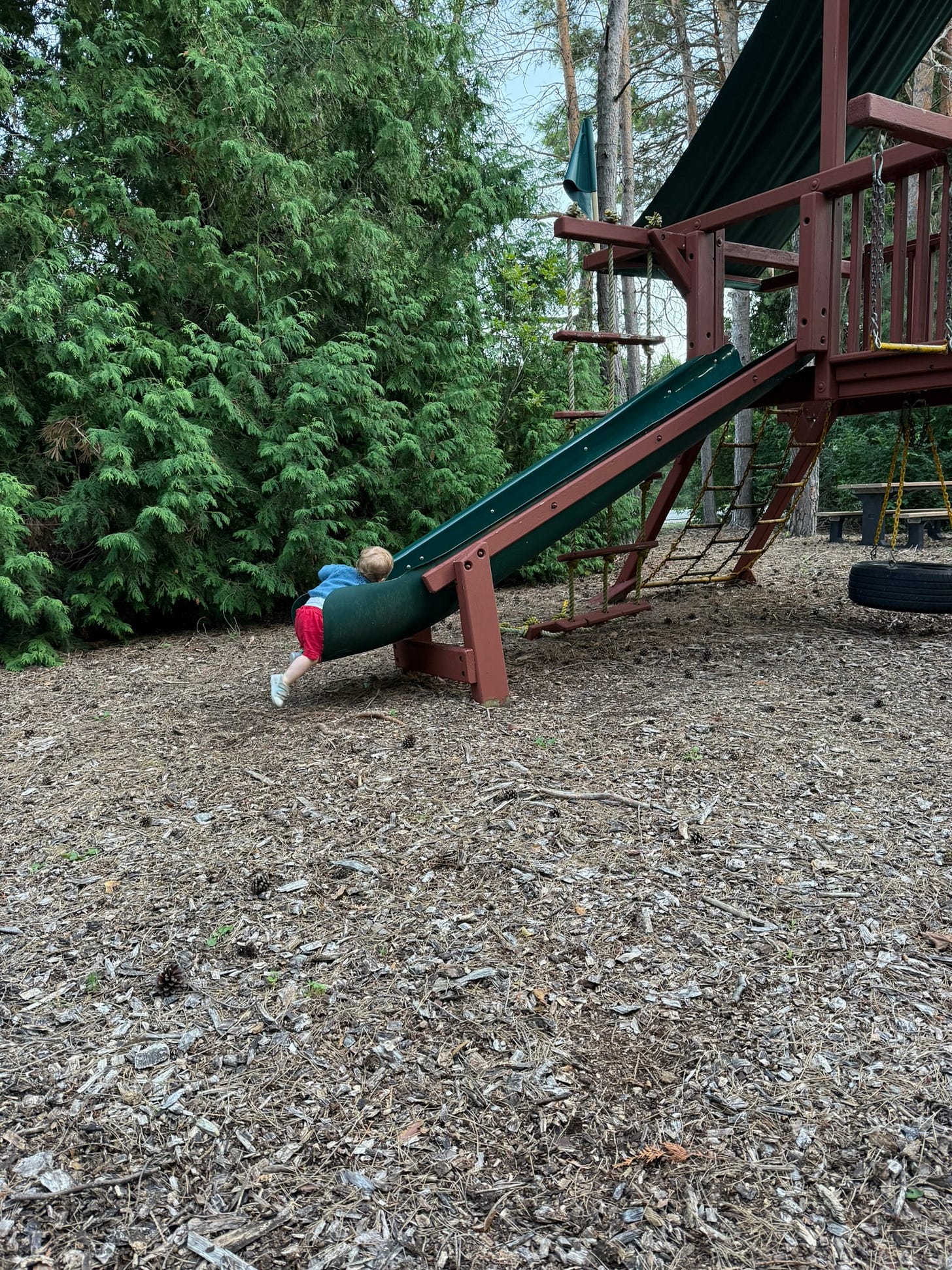 Like this evening when I sit on the bench and you run around the playground, climbing up the slide part way and sliding down all by yourself. You give me a smile and then toddle over to me, hauling yourself up on the bench beside me all on your own. Big kid, indeed.