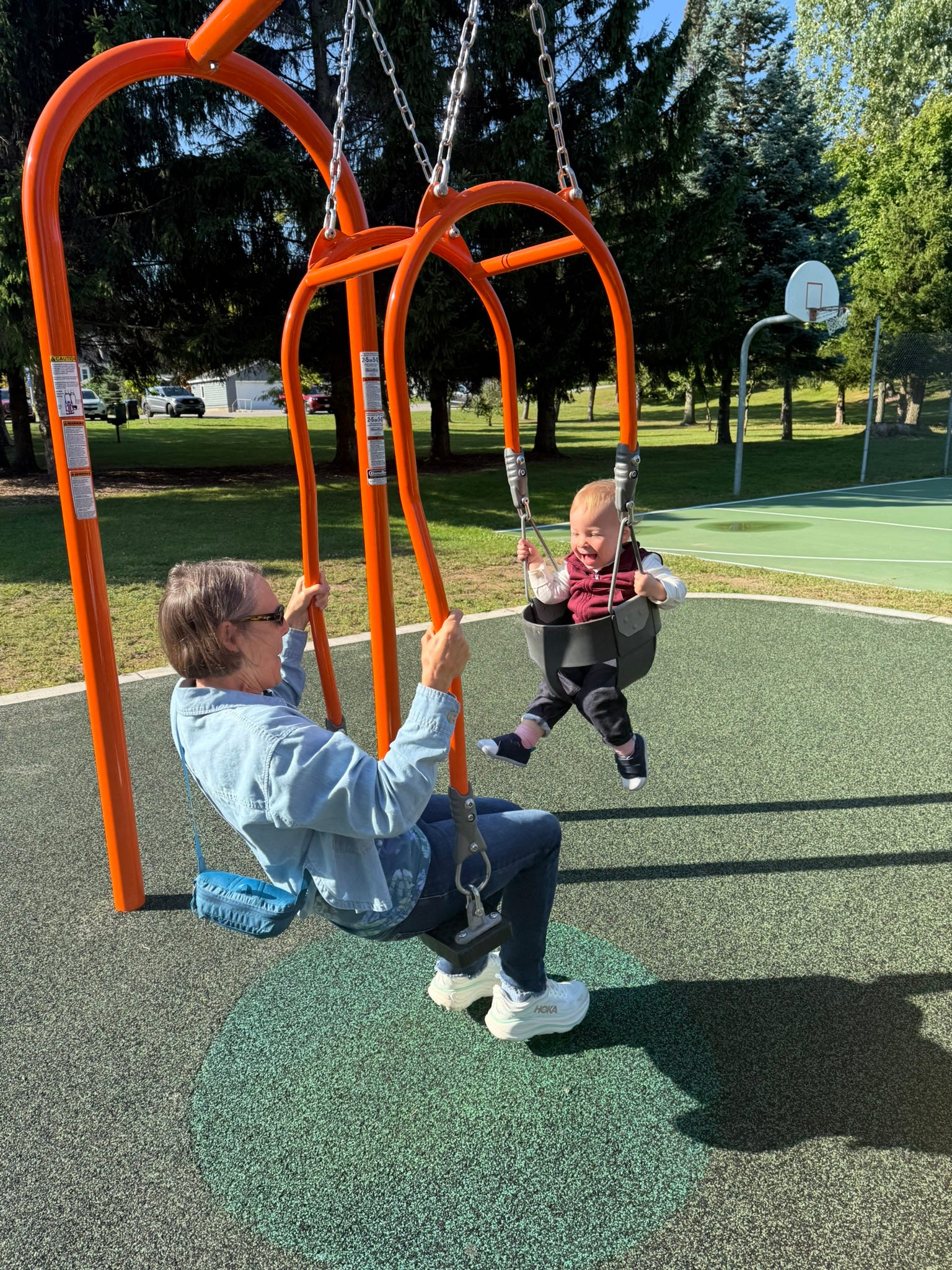 We get going before 8 am and don’t stop, circling from Sturgeon Bay to Sister Baby and back to the cottage. Otumba Park, the Farmer’s Market, Rad House Cafe (that has a children’s play area). You barely nap, but we both tiredly power through. Though on a late afternoon ride on Sparky with Cappi you close your eyes and doze in my lap over despite the bumpy trail.