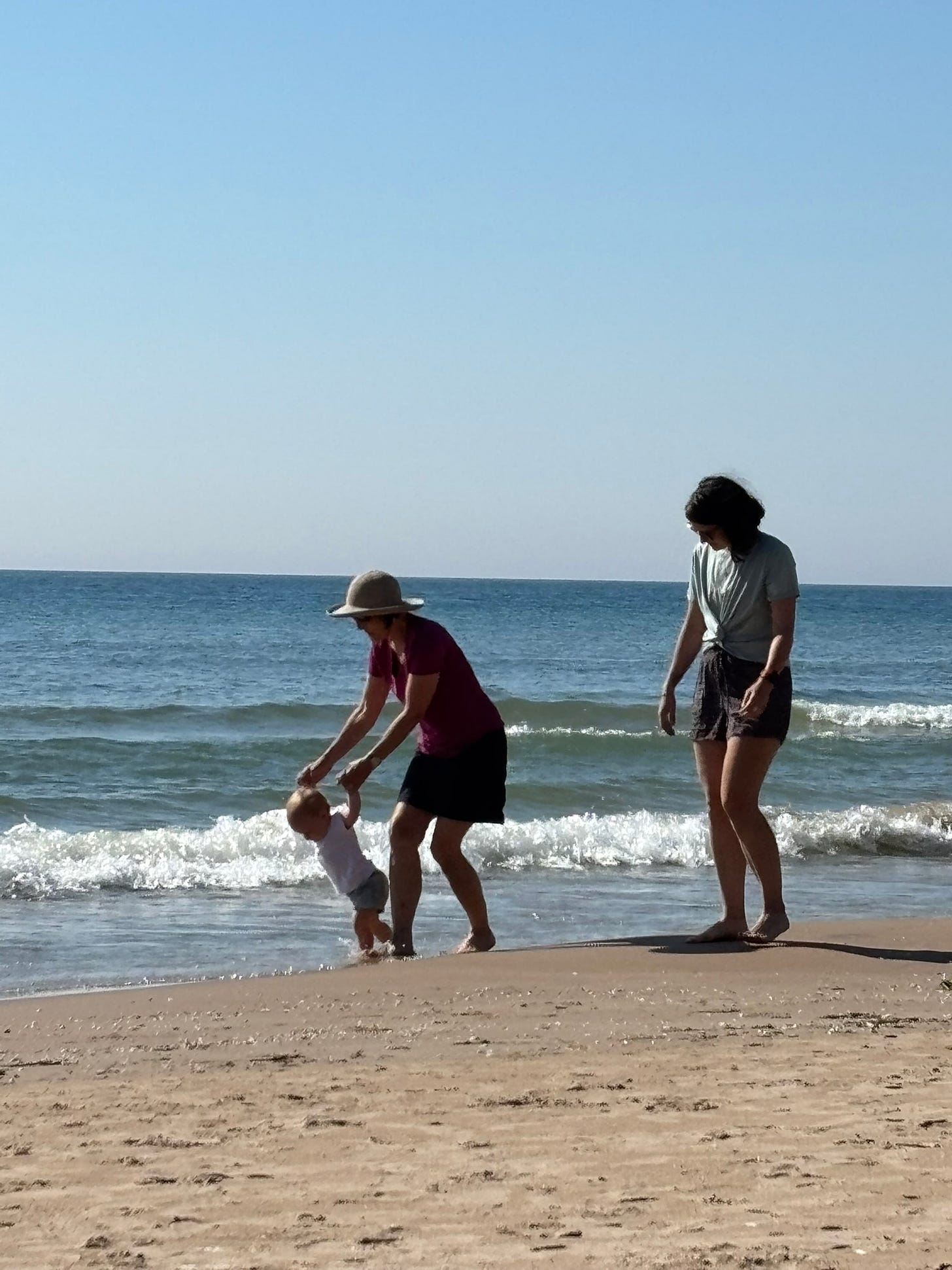 You hold MorMor’s hands and walk along the beach with your feet in the water. I think it’s a little too cold for that, but you rope me into getting wet during your second walkabout. I could stay here for hours with a book to read. Someday I hope you’ll want to do that with me.