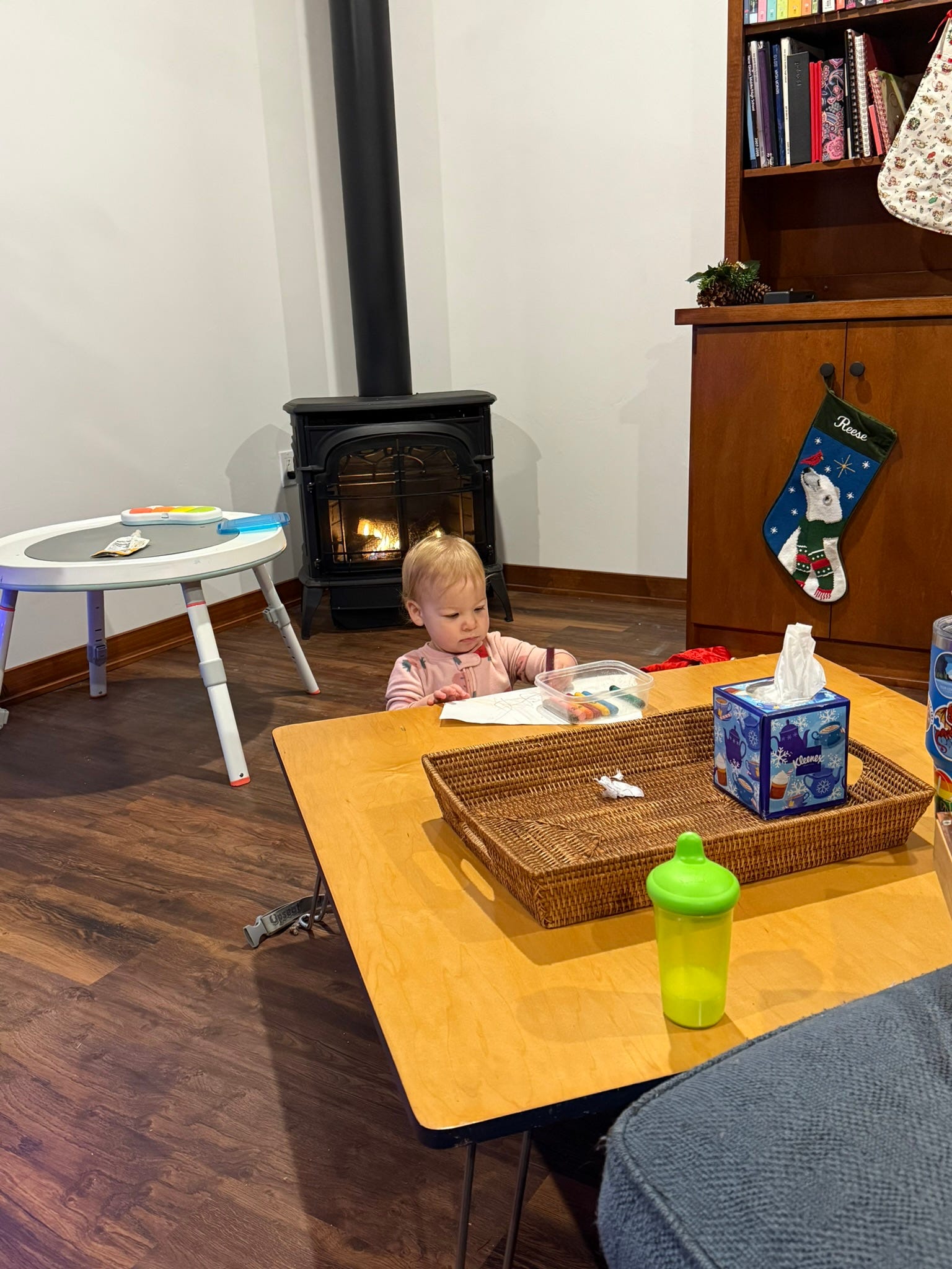 But I capture a nice moment of peace this morning. It’s just after 6:30 and then sun hasn’t risen, but I’ve turned the fireplace on, and you hop out of my lap where we were reading to color. I vibe.
