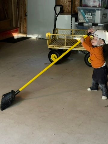 In the late afternoon, we played outdoors at the cottage, peeking in on the finished plaster at our new house and then exploring the barn and the loft.