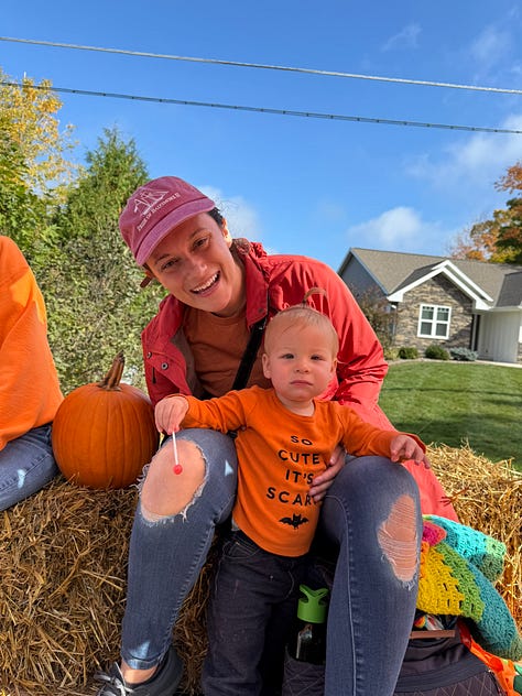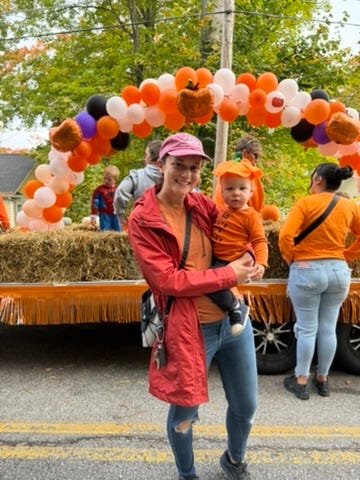 You were in your first parade today! Your daycare had a float and invited us to join so we did a Mama-Daughter outing to Sister Bay this morning. We’ve both never been to Fall Fest before — it’s packed. The streets were packed from curb to building all through town for the parade.