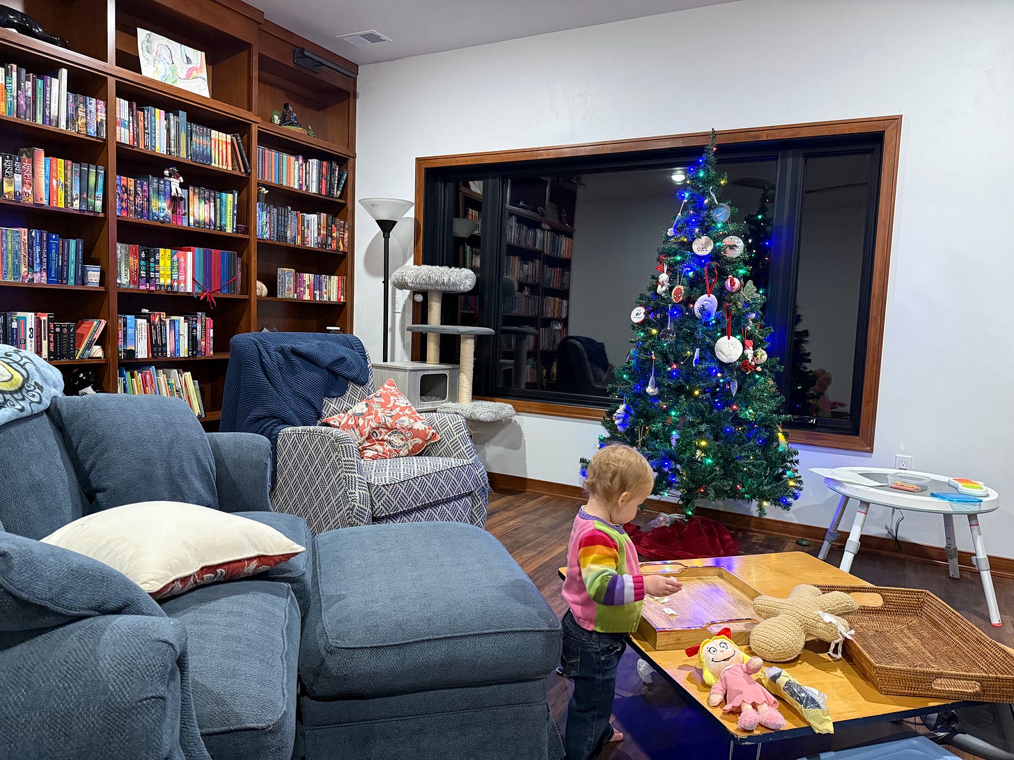 We have a quiet couple of minutes before our bedtime routine, where you sit on the bottom step, and I sit next to you. We look out at the living room together. I ask you what your favorite part of your day was, and tell you mine is this.