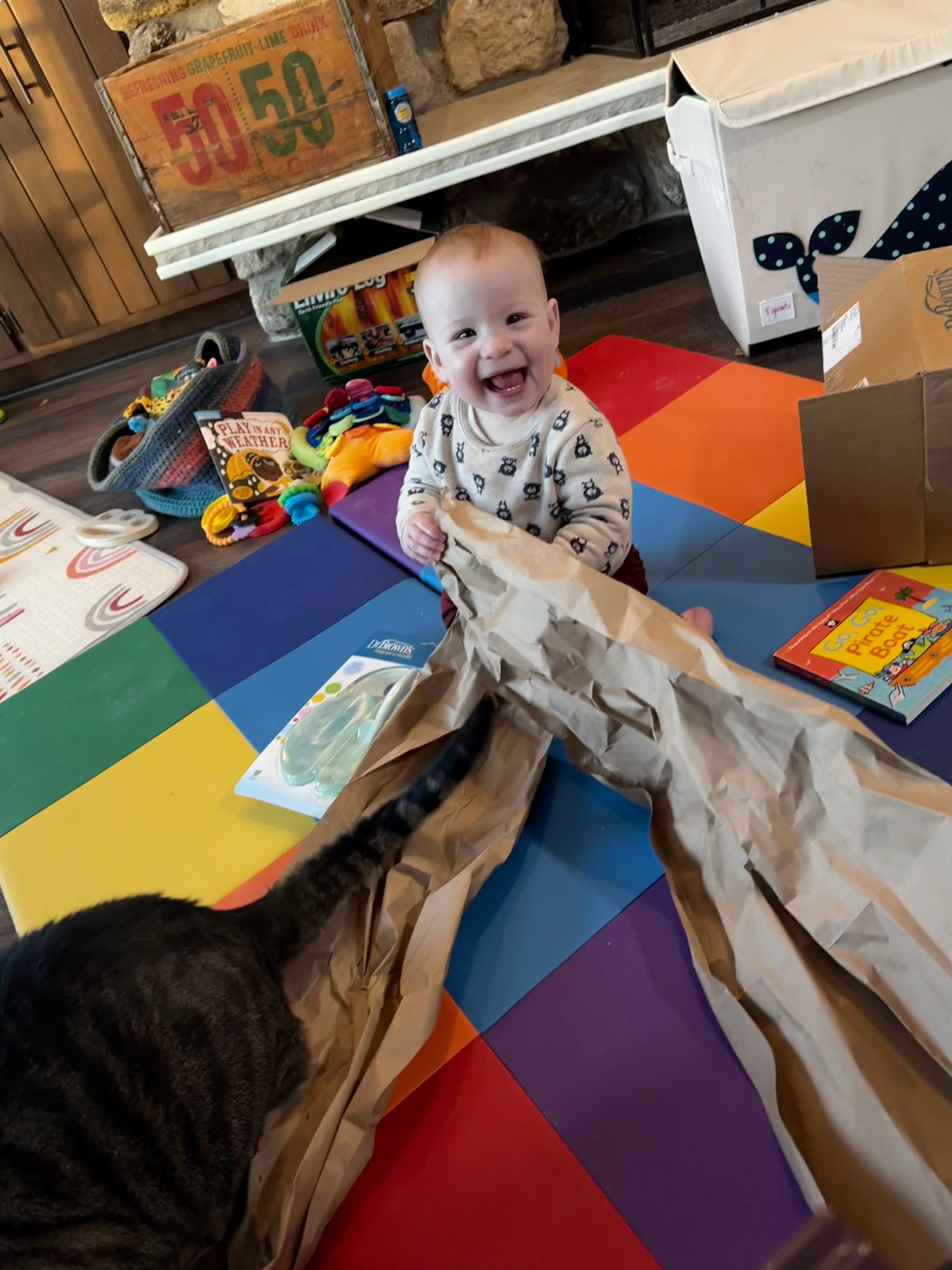 The medicine kicks in enough that you and Merlin have fun playing with a box and packing paper when we get home. Though I have to pull pieces of it out of your mouth before you swallow. I’ve been doing that a lot with you and paper lately.