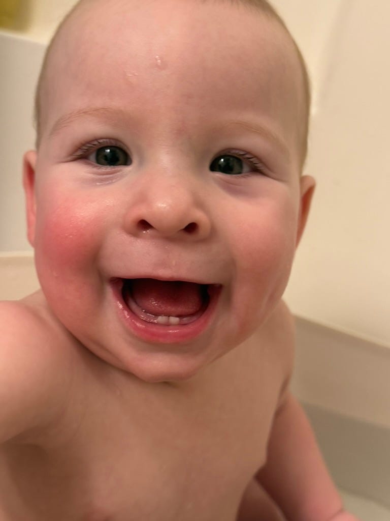 You are overtired and teething by the drive home and scream for the first few minutes until you fall asleep. During our routine tonight, you start crying a minute after I take you out of the bath and keep it up until you’re put down to sleep, drinking a few ounces of formula and taking some Tylenol on the way down. Poor girl. Your teachers said you were a little off today too. Too many teeth coming at once. I sing Disney songs to you and skip reading tonight.