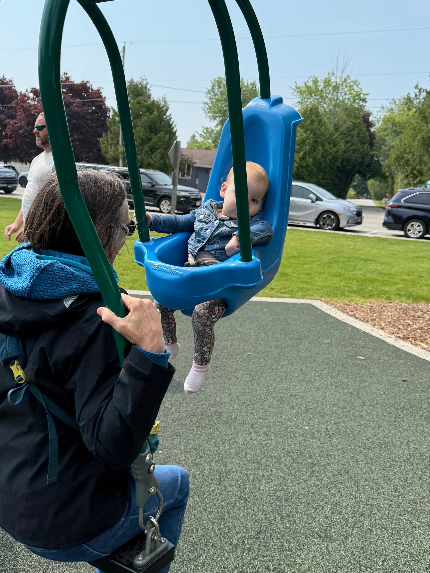 This weekend we attended two farmers’ markets. I am full up on scented soap and ranch corn nuts. After walking around the Bailey’s Harbor market today, we stop at the playground, but it’s not long before you start to nod off while swinging with MorMor.