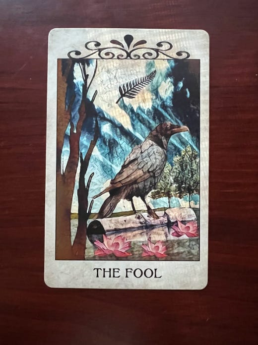The tarot card that came up was the Fool — a card I love. The beginning of the Major Arcana journey.