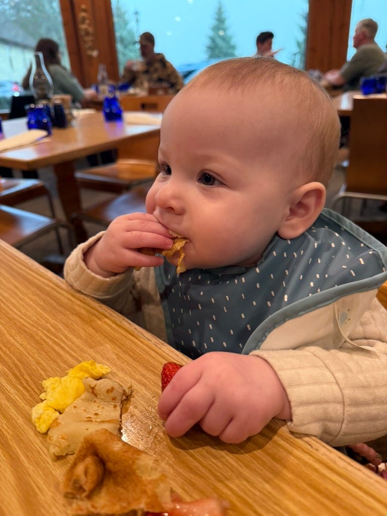 This morning you hit a Door County milestone and visited Al Johnson’s for the first time. It’s too soon in the season for the goats but a great time of year to visit — not so busy with no wait. I get you your order of Swedish pancakes and fresh strawberries from the kids menu and Cappi gives you some of his eggs. It’s the same order I got as a kid. It’s no surprise you love it — everyone loves Al Johnson’s pancakes.