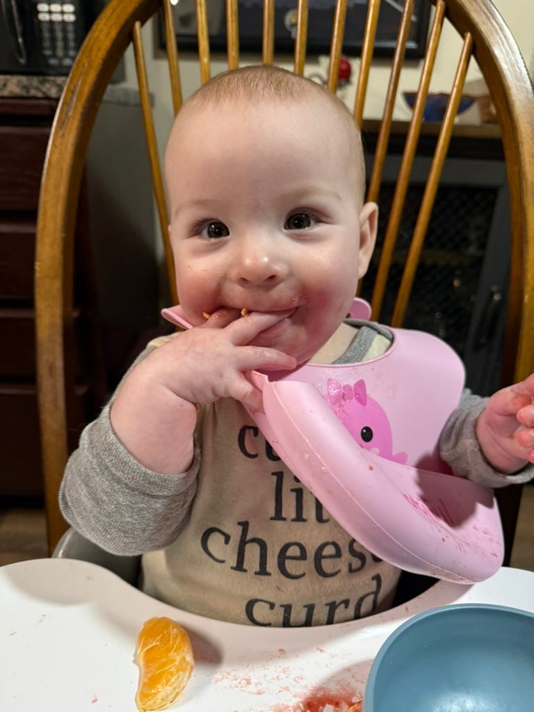 The Pop-Tart is a hit. I think, this time, at least 30% of the quarter piece I gave you ended up in your stomach. The orange slices sit whole and neglected.