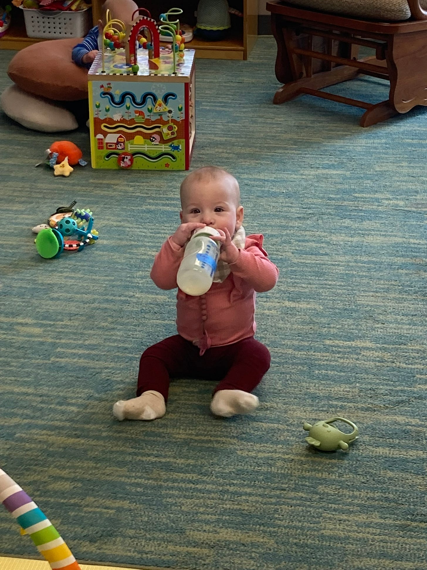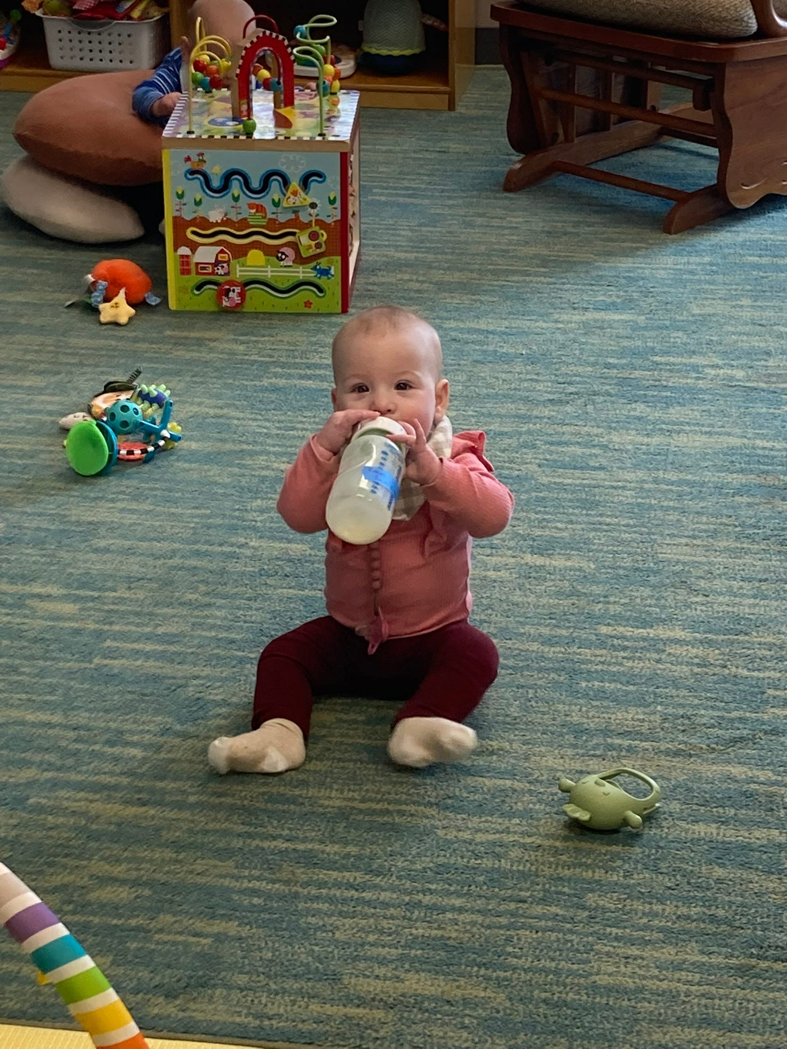 Today your teacher gave me photographic evidence that you can, in fact, hold your bottle on your own. It wasn’t for long apparently, but it was long enough for her to get a picture. You have the dexterity and strength, just not the will — unless your teachers are too busy taking care of other babies at daycare and you’re hungry enough. With me, your hands stay limp at your sides.