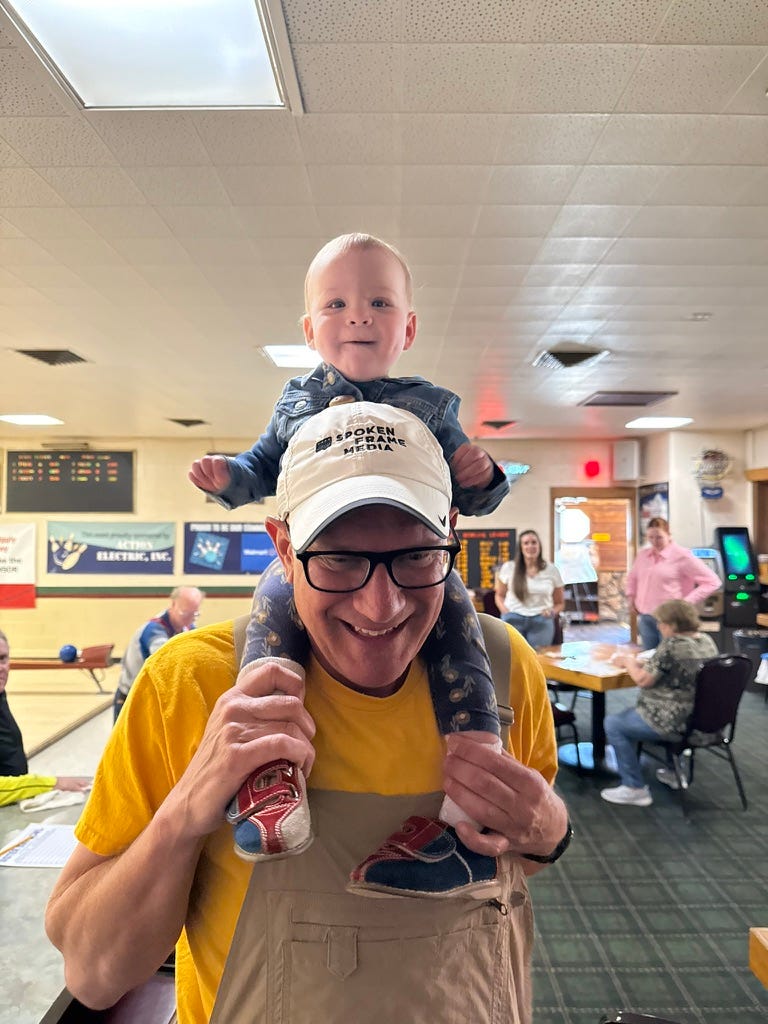 I had a great connection today with you too, darling. And it was your first time going bowling! We went to a fundraiser for your daycare up at Sister Bay Bowl. Someday you’ll be old enough to bowl yourself, so instead we played pass the baby while we took our turns. However, you did briefly wear the cutest little bowling shoes.