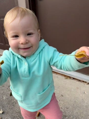 For the most part, you are patient with my distraction this evening. We go outside after dinner — it’s windy and chilly — but you walk around the big parking lot and pick up leaves. My body settles a bit. Some quiet outside time with just me and my little girl is just what I need.